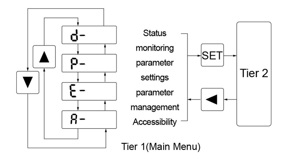 | SET | Enter | Menu Entry,parameter modification confirmation or operation confirmation |