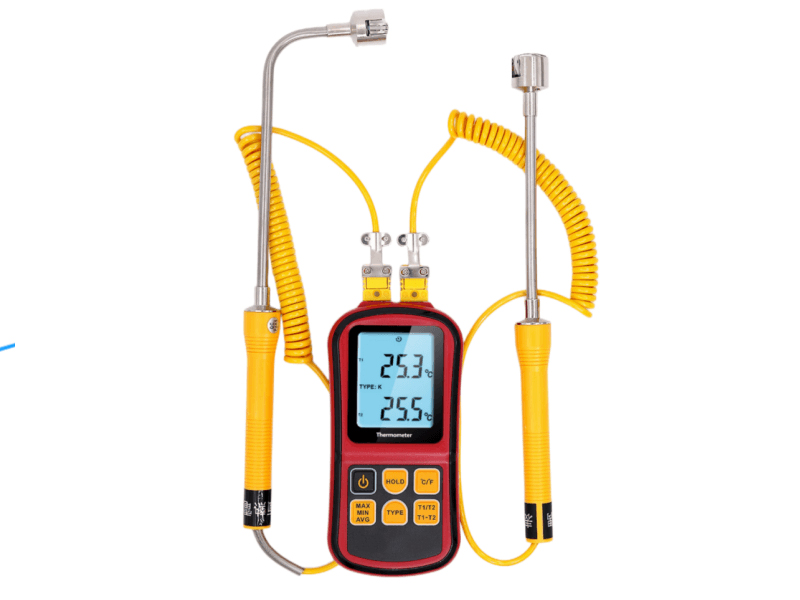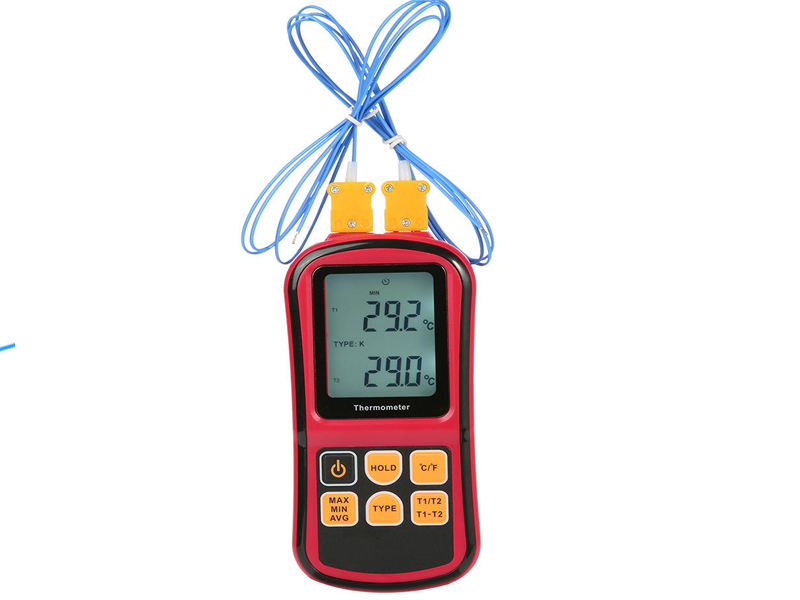 | Measuring range | J-type:-210℃ to 1200℃(-346F to 2192°F) K-type:-200℃ to 1372℃(-328F to 2501F) T-type:-250℃ to 400℃(-418F to 752F) E-type:-150℃to 1000℃(-238F to 1832°F) N-type:-200℃to 1300℃(-328F to 2372°F) R-and S-type:0℃ to 1767℃(32F to 3212F) |