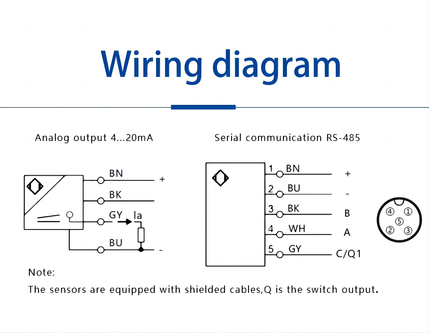 | Connection way | 2m 5pin/4pin PVC cable (5pin: RS-485 output;4pin:Analog output) | ||