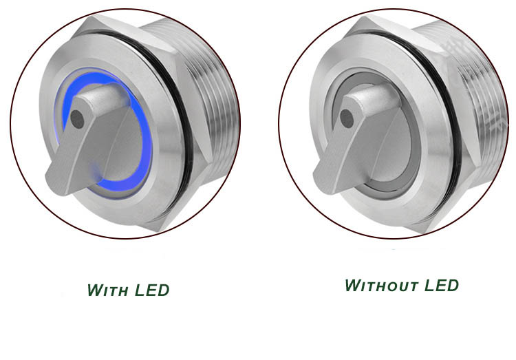 Metal knob selector switch, 2-position and 3-position rotation with light