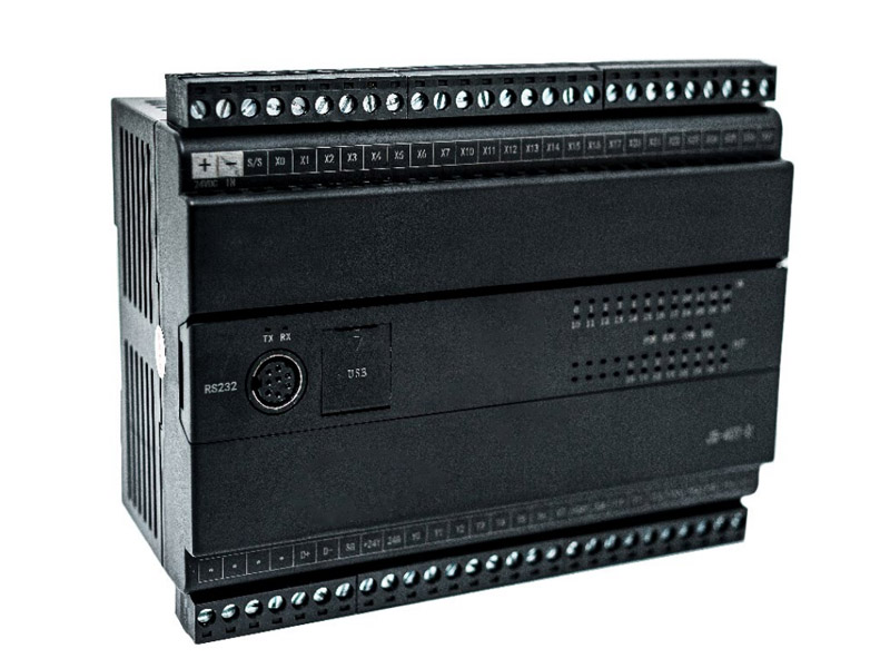 | S-24T3-A | 24 point host, 12DI (NPN) / 12 DO (NPN), including: 2 point maximum 200k high speed input (X0-X1,1 AB phase) / 2 point maximum 50K high speed input, 3 point maximum 200k high speed output (factory default maximum frequency is 100k), 3 drive motors. The C language is not supported, and the program capacity is 16K. Communication interface: RS232 / RS485 / USB, 16 expansion modules connected to the right side (the maximum digital input / output is 256 / 256), DC24V power supply. |